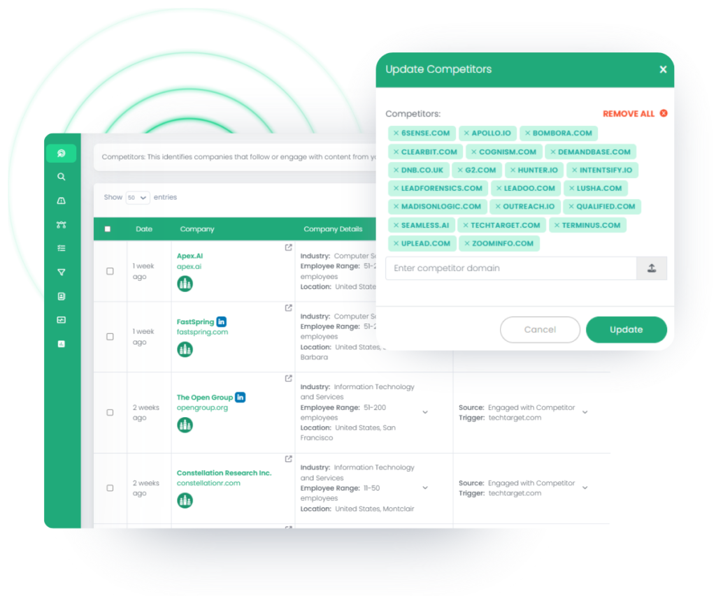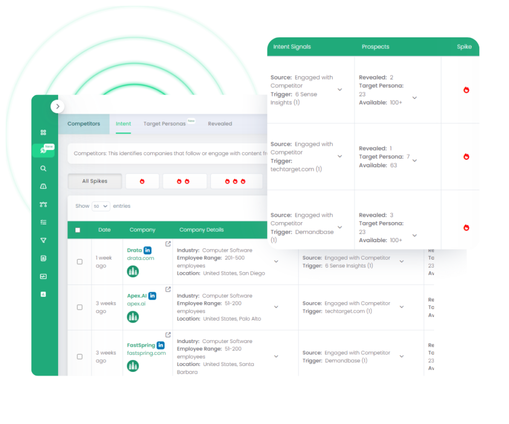A single setup flow that creates a comprehensive buyer intent campaign, identifies targeted contacts, automates sales cadences, and jumpstarts success with 100 free leads – all within a lightning-fast, under 3-minute setup.