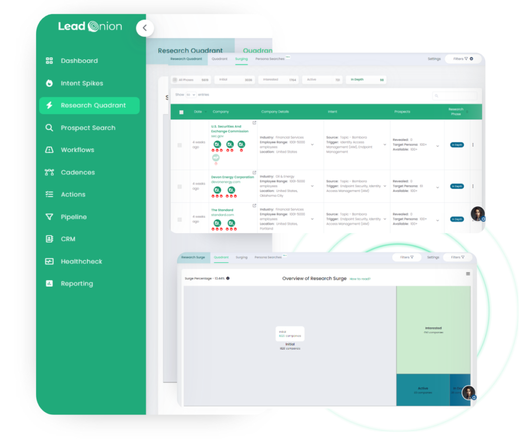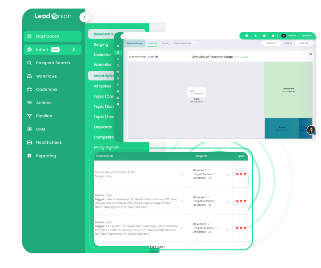 Lead Onion’s platform monitors real-time intent signals, helping your team spot businesses that are in the market for solutions like endpoint protection, data encryption, or threat detection.