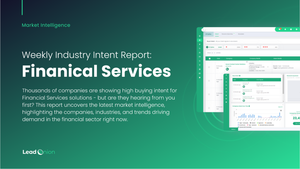 Access a breakdown of key intent signals from the 30,760 companies actively researching Financial Services solutions.