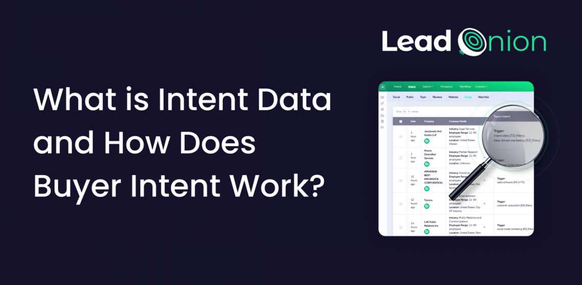 Lead Onion Buyer IntentThese “signals” are triggered by a prospect’s activity. Whether it be their engagement with a competitor, website visits or research into your product, they are happening long before your prospects have visited your website, submitted a form or got in contact.
