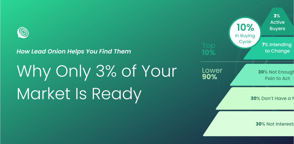 The other 97% are either unaware of their need, still researching, or simply not looking – yet. And while most teams focus on generating as many leads as possible, the real opportunity lies in identifying and activating that small group who are actively looking for a solution like yours, right now. This is where buyer intent and Lead Onion change everything.